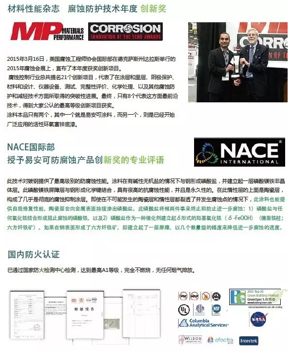 為深化亞洲最大海工展服務(wù)維度,2017年3月20日-22日,位于北京·中國(guó)國(guó)際展覽中心(新館)舉辦的第七屆中國(guó)(北京)國(guó)際海洋工程技術(shù)與裝備展覽會(huì)特別開設(shè)了工業(yè)防腐專區(qū),吸引了多家油漆涂料企業(yè)慕名參展。憑著化腐成奇的革命技術(shù),易安可涂料科技(北京)有限公司也確定亮相展會(huì),大展科技神功。
