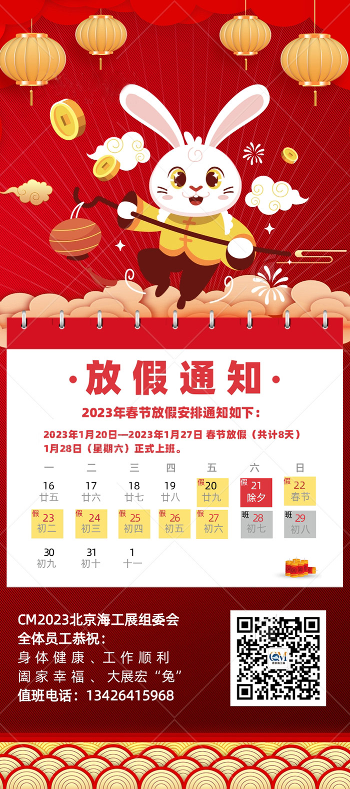 值此新春佳節(jié)來臨之際,CM2023北京海工展組委會(huì)全體員工給您拜年啦!恭祝大家: