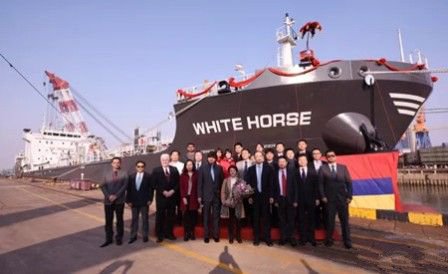近日下午,中船澄西為日本KUMIAI公司建造的2號7800噸瀝青船 “WHITE HORSE”號在揚(yáng)州基地順利命名交付。
