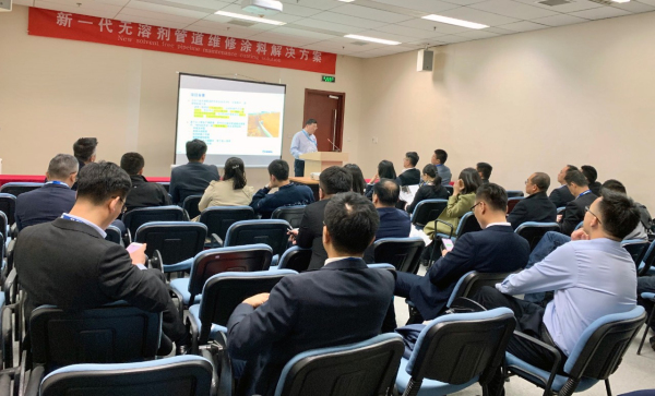 3月27日上午,海虹老人還舉辦了一場(chǎng)別開(kāi)生面的產(chǎn)品介紹會(huì),為與會(huì)客戶(hù)介紹了海虹老人新一代無(wú)溶劑管道維修涂料解決方案的先進(jìn)技術(shù)、產(chǎn)品、應(yīng)用以及案例。其獨(dú)特性能如:優(yōu)異的耐介質(zhì)滲透性能,針對(duì)管道應(yīng)用環(huán)境開(kāi)發(fā);固化速度快,滿(mǎn)足維修管線(xiàn)回填要求; VOC接近于零,環(huán)境友好深受客戶(hù)的好評(píng)。