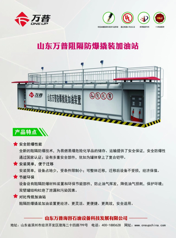 撬裝式加油裝置是集儲油罐、加油機、視頻監(jiān)控為一體的地面可移動加油站;采用阻隔防爆技術(shù)改造,將阻隔防爆材料按一定的密度方式填充在儲存有易燃、易爆液體的儲油罐中,當遇到明火、靜電、撞擊、雷擊、槍擊、焊接、意外猛烈撞擊事故時都不會發(fā)生爆炸事故。具有防火防爆,安全環(huán)保,占地面積小,便于遷移等特點,產(chǎn)品廣泛適用于公交站點、港口、碼頭、機場、大型施工場地、企業(yè)內(nèi)部加油站等。