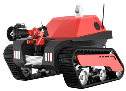 中型油動(dòng)力消防滅火機(jī)器人采用履帶式懸掛減震機(jī)構(gòu),由機(jī)器人本體、消防水炮、紅外云臺(tái)及控制終端等模塊構(gòu)成。同小型消防滅火機(jī) 器人相比,中型油動(dòng)力消防滅火機(jī)器人的行駛性能、拖拽水帶、滅火能力等更加強(qiáng)大,負(fù)載更大,續(xù)航時(shí)間更長。中型油動(dòng)力消防滅火 機(jī)器人適用于石油化工、地下管廊、隧道、大跨度/大空間場(chǎng)所等人員不易接近的危 險(xiǎn)火災(zāi)現(xiàn)場(chǎng)進(jìn)行滅火、冷卻、化學(xué)洗消等作業(yè)。