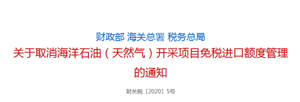 3月30日,財政部、海關(guān)總署、稅務(wù)總局三部門公布關(guān)于取消海洋石油(天然氣)開采項目免稅進(jìn)口額度管理的通知。通知規(guī)定,開采海洋油氣,進(jìn)口鉆井鉆機(jī)勘探船等設(shè)備,將取消免稅額度管理。