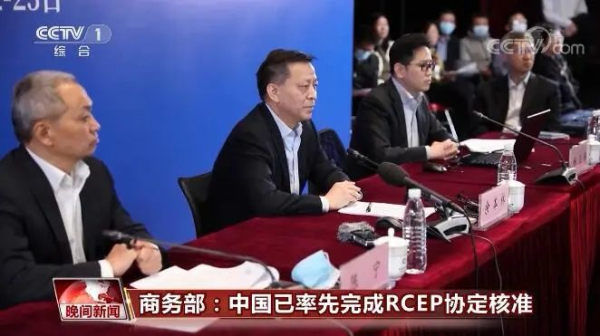 國家商務(wù)部國際司負責人2021年3月22日表示,目前,中國已經(jīng)完成區(qū)域全面經(jīng)濟伙伴關(guān)系協(xié)定也就是RCEP協(xié)定的核準,成為率先批準協(xié)定的國家。