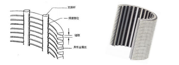 楔形網(wǎng)(Wedge Wire Screen) ,又稱為約翰遜濾網(wǎng)(Johnson Screen) ,是應(yīng)用特制不銹鋼梯 形(楔形)絲(繞條)繞組在一圓周式排列的一組縱向支撐桿(筋條、托條)上焊制而成的濾芯,其篩管縫隙間會形成明顯的 V 字形開口。