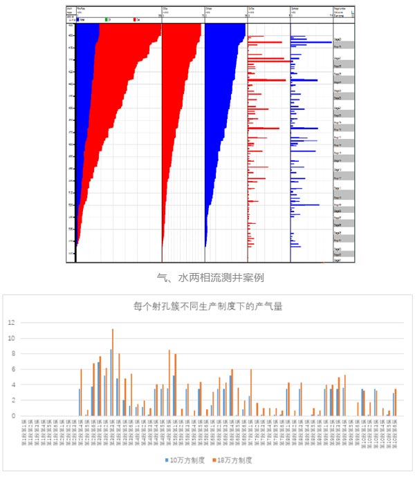 目前在國內(nèi)光纖測井服務油氣田有:中石油西南油氣田、塔里木油田、浙江油田、重慶頁巖氣等區(qū)塊,我們最早實現(xiàn)了連油光纖測井技術(shù)在國內(nèi)油氣田的應用。在應用過程中,這項技術(shù)對區(qū)分油、氣、水多相流,監(jiān)測每個射孔簇的產(chǎn)量有明顯優(yōu)勢,詳見以下案例: