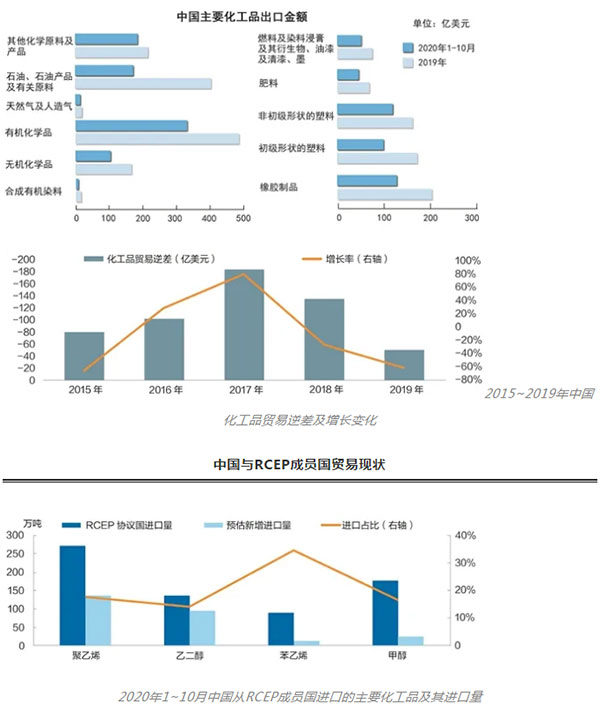 目前中國仍有不少高端精細化學(xué)品及新化學(xué)材料依賴進口資源,而日本、韓國又是我國高端化工材料的主要進口來源國。RCEP的簽訂,將有助于國內(nèi)下游企業(yè)降低采購成本。