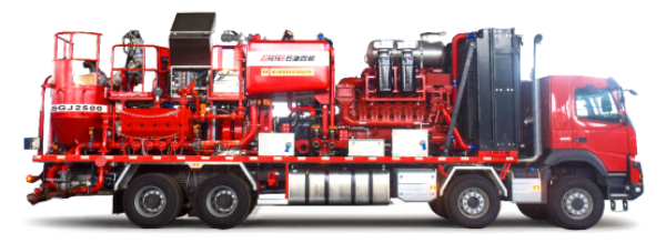 ▲2500型大功率固井車:主要由重載底盤、動(dòng)力系統(tǒng)、SQP2500EG重型柱塞泵和Super-HIMI大排量混合器組成,是目前陸地功率最大 的固井車、混漿能力比常規(guī)固井設(shè)備提高76%,可以實(shí)現(xiàn)遠(yuǎn)程自動(dòng)控制,適用于深層-超深層油氣井固井施工。